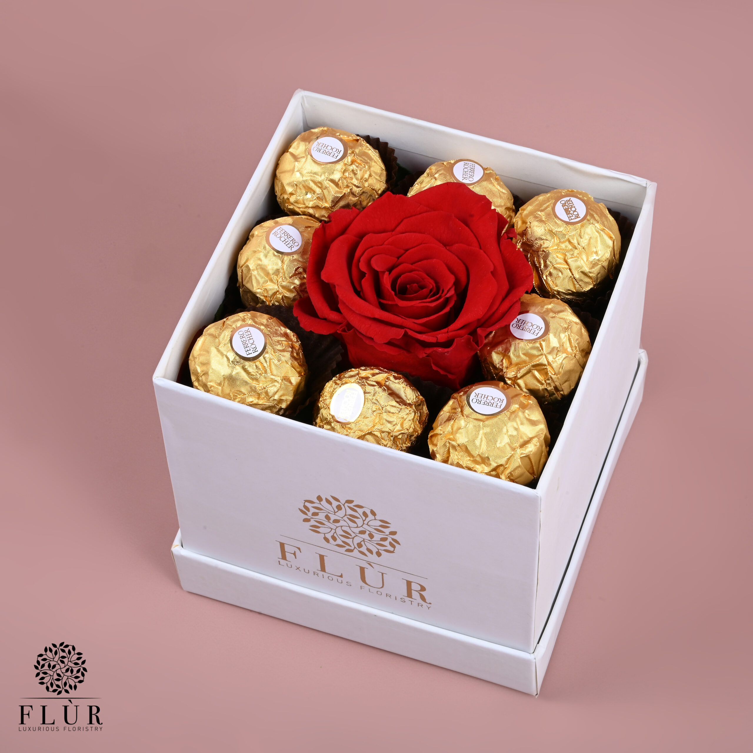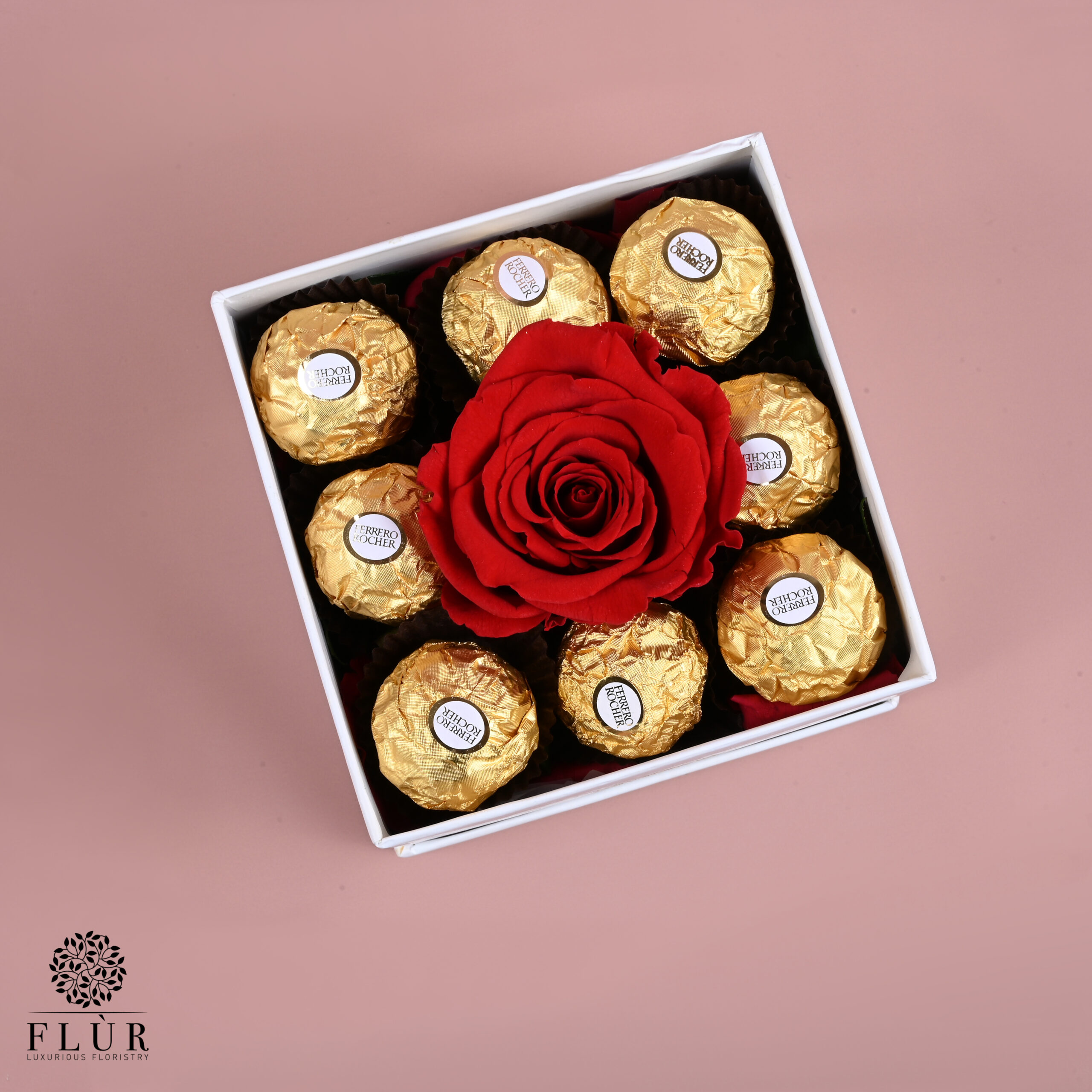 “Eternal Devotion”, a timeless expression of love. Embrace the enchantment of a single red rose paired with decadent chocolates, symbolizing enduring passion and sweet indulgence!